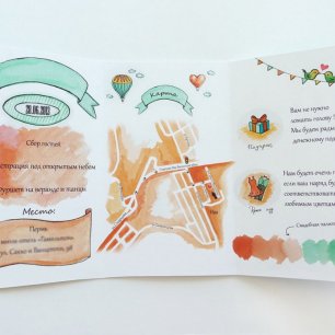 Также советуем присмотреться к книге пожеланий на свадьбу. Она сохранит в себе все тёплые пожелания гостей на долгие годы и будет дарить молодожёнам радостные воспоминания. Дизайн гостевой книги вы можете придумать самостоятельно или заказать её уже в готовом виде.